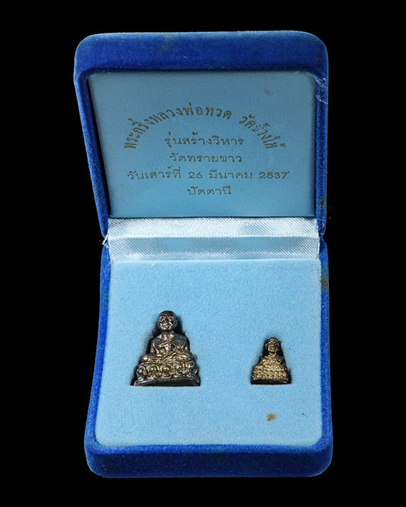 หลวงปู่ทวด หลวงพ่อรวย รุ่นรวยนิรันตราย หล่อโบราณหล่อเทดินไทยฝังตะกรุดทองคำ (รุ่นแรก) เนื้อนวะโลหะ กรรมการ หมายเลข ๒๒๐ พร้อมกล่อง เลี่ยมกันน้ำเรียบร้อยครับ