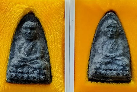 หลวงพ่อทวด วัดห้วยมงคล เนื้อว่านพิมพ์เตารีด2องค์ หลังหัวใจพระราหู+หลังข้าวสารหิน รุ่นปาฏิหาริย์ลายเซ็น"
