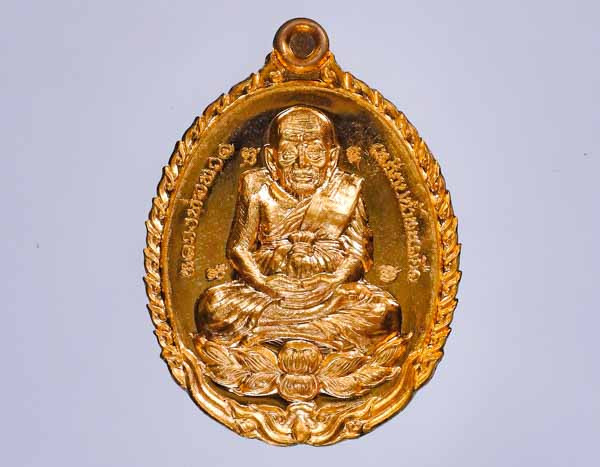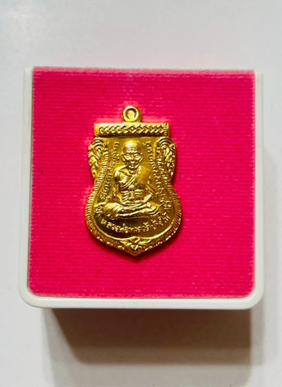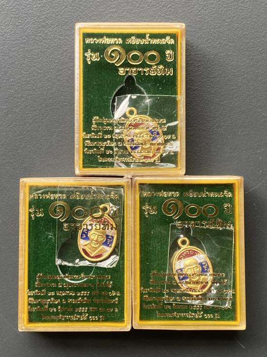 เม็ดแตงหลวงปู่ทวด หลังอาจารย์ทิม รุ่น100ปี เนื้อชุบทองลงยาสีธงชาติ 3องค์ |