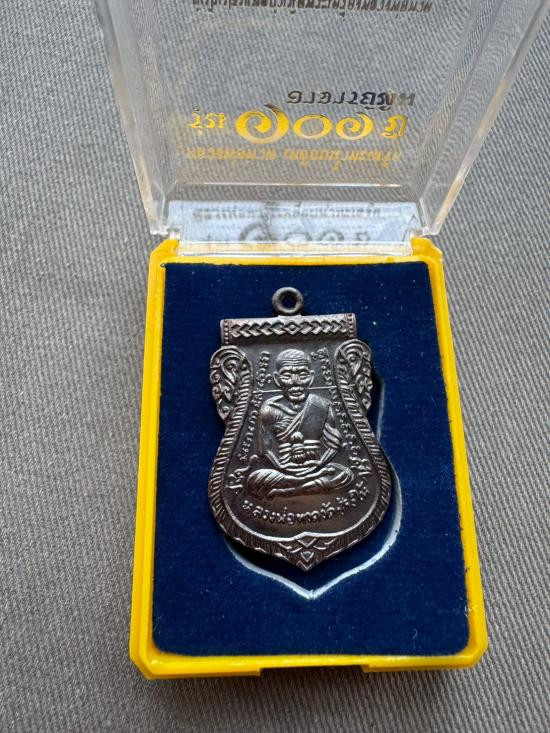 เดียวไวไว เหรียญเลื่อน หลวงพ่อทวด รุ่น 101 ปี อาจารย์ทิม เนื้อทองแดงรมดำ ตอกเลข สวยๆผิวปรอทเดิมๆ พร้อมกล่องเดิมไม่ผ่านการใช้(1) |