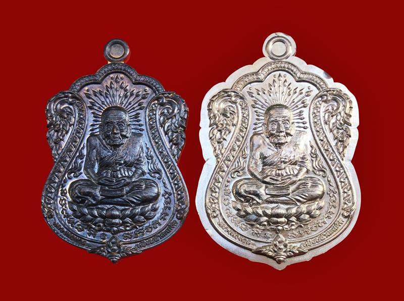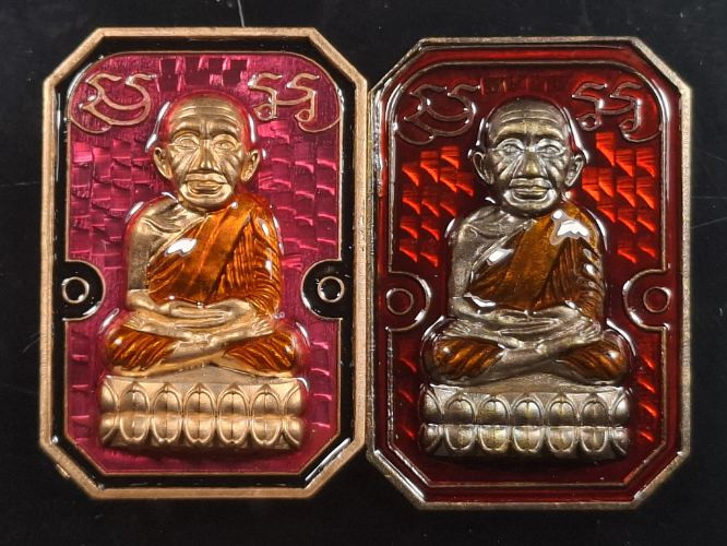วัดใจ หลวงปู่ทวด หลวงปู่ศิลา เมตตาอธิษฐานจิต รุ่นเลื่อนสมณศักดิ์ เหนือดวง เนื้ออัลปาก้า ลงยา No.600 |