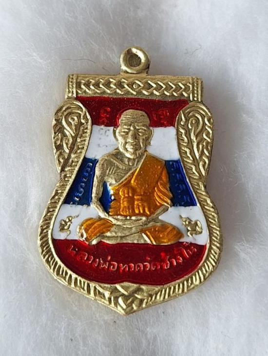 วัดใจ หลวงปู่ทวด หลวงปู่ศิลา เมตตาอธิษฐานจิต รุ่นเลื่อนสมณศักดิ์ เหนือดวง เนื้อทองทิพย์ ลงยาลายธงชาติ No.413 |