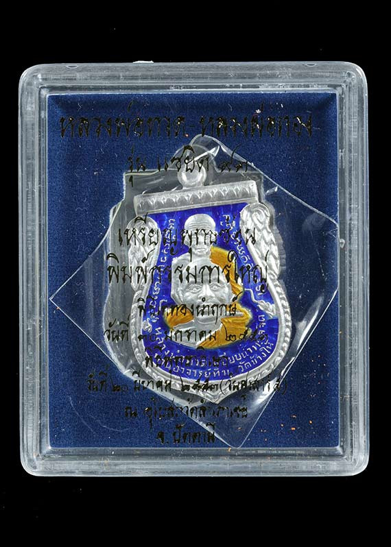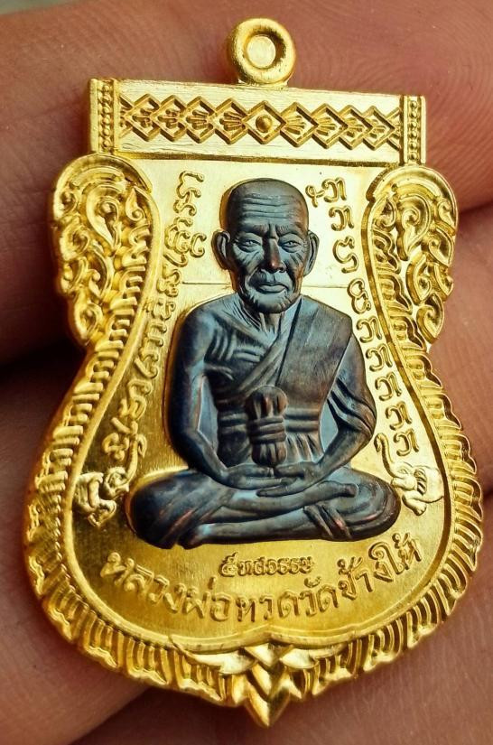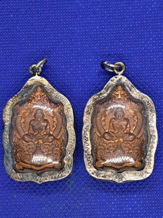วัดใจ หลวงปู่ทวด หลวงปู่ศิลา เมตตาอธิษฐานจิต รุ่นเลื่อนสมณศักดิ์ เหนือดวง เนื้อทองทิพย์ ลงยา No.161 |