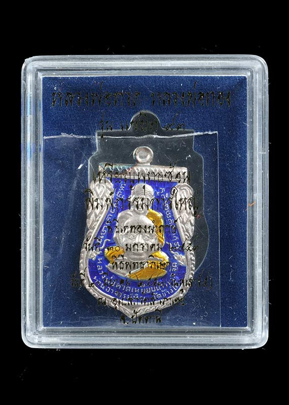 วัดใจ หลวงปู่ทวด หลวงปู่ศิลา เมตตาอธิษฐานจิต รุ่นเลื่อนสมณศักดิ์ เหนือดวง เนื้อทองทิพย์ ลงยา No.84 |