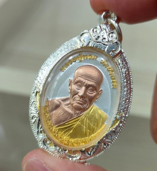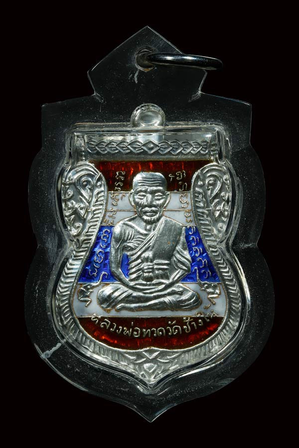 วัดใจ 200 เหรียญหลวงพ่อทวด หลังหลวงพ่อทอง วัดสำภาเชย เนื้อเงินลงยาลายธงชาติ |