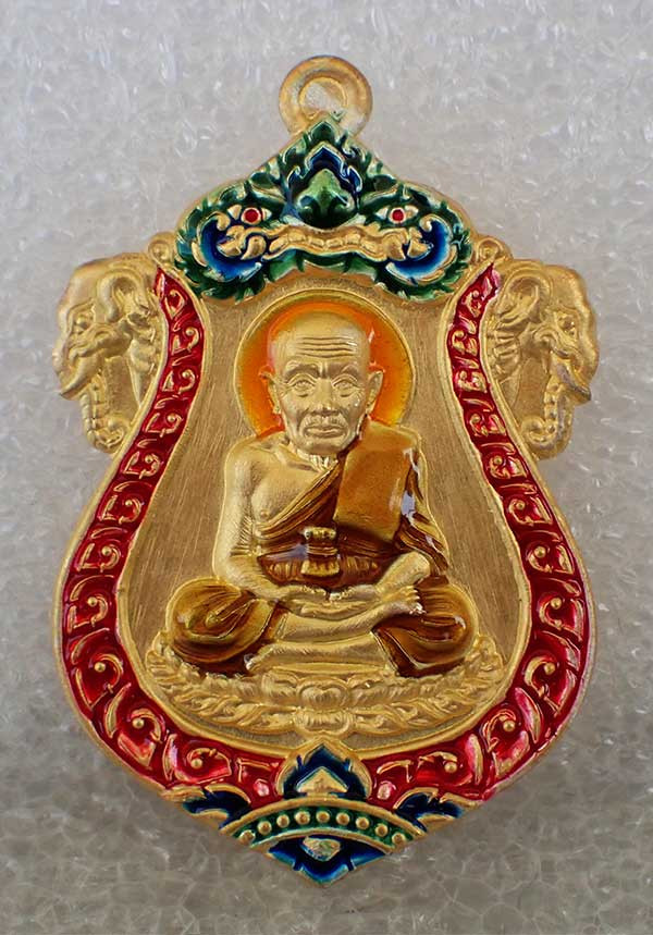 เม็ดแตงหลวงปู่ทวดหลังอาจารย์ทิม รุ่น101ปี เนื้อทองแดงนอกชุบทองลงยาแดง |