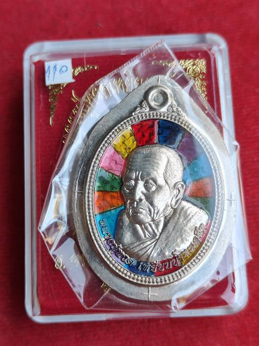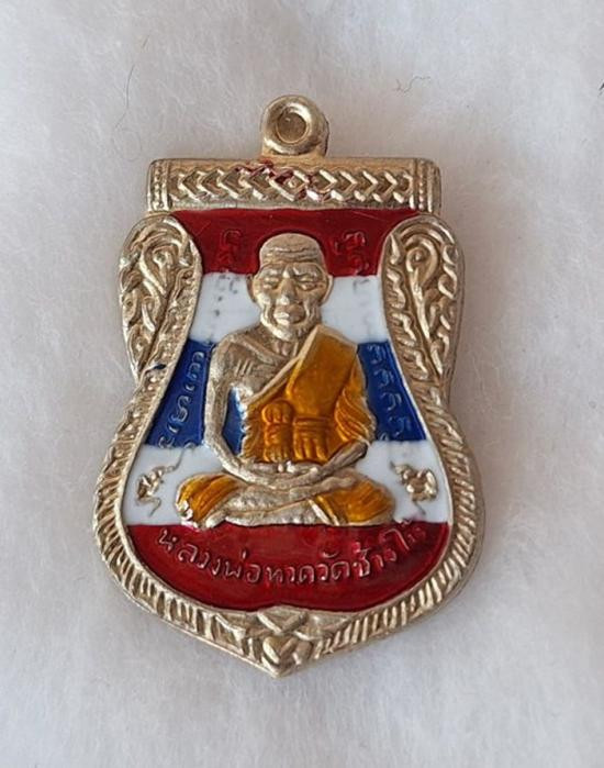 วัดใจ หลวงปู่ทวด หลวงปู่ศิลา เมตตาอธิษฐานจิต รุ่นเลื่อนสมณศักดิ์ เหนือดวง เนื้ออัลปาก้า ลงยาลายธงชาติ No.238