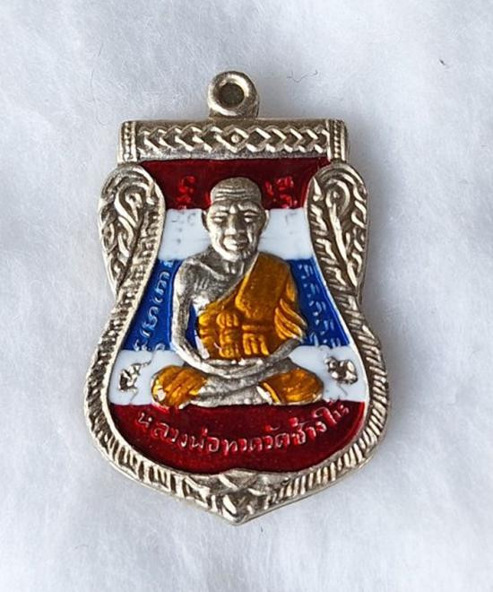 วัดใจ หลวงปู่ทวด หลวงปู่ศิลา เมตตาอธิษฐานจิต รุ่นเลื่อนสมณศักดิ์ เหนือดวง เนื้ออัลปาก้า ลงยาลายธงชาติ No.945