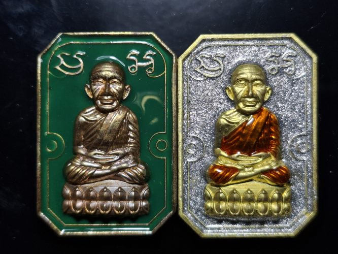 วัดใจ หลวงปู่ทวด หลวงปู่ศิลา เมตตาอธิษฐานจิต รุ่นเลื่อนสมณศักดิ์ เหนือดวง เนื้ออัลปาก้า ลงยา No.784
