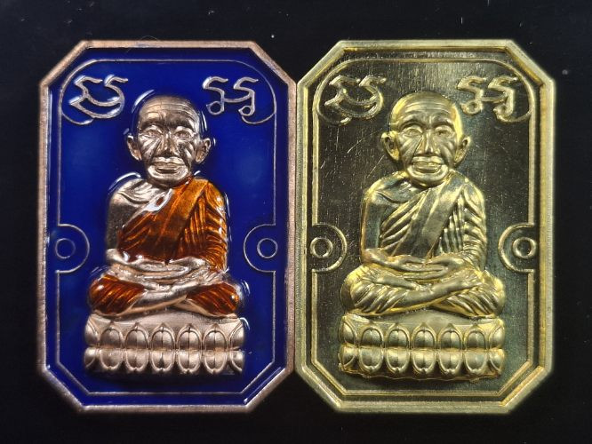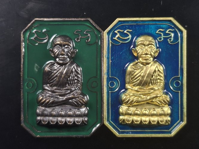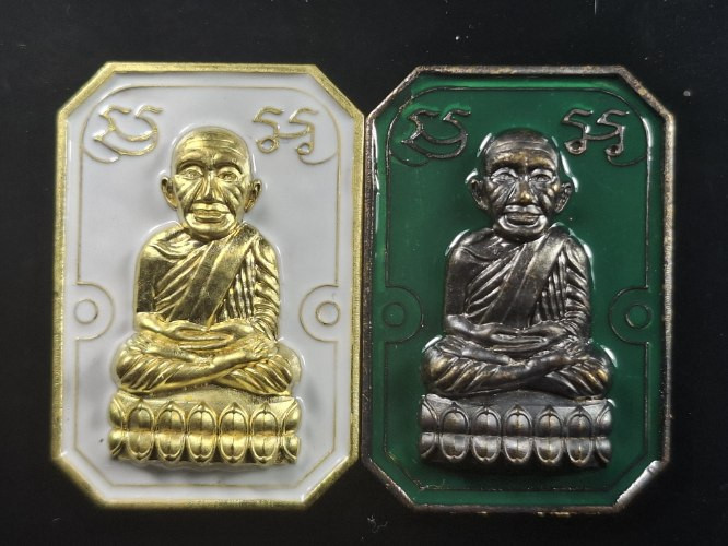 วัดใจ หลวงปู่ทวด หลวงปู่ศิลา เมตตาอธิษฐานจิต รุ่นเลื่อนสมณศักดิ์ เหนือดวง เนื้อทองทิพย์ ลงยา No.98 |
