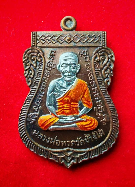 เคาะเดียวแดง เม็ดแตง 2องค์หลวงปู่ทวด รุ่น102ปี เนื้อ ชุบทองลงยาแดง |
