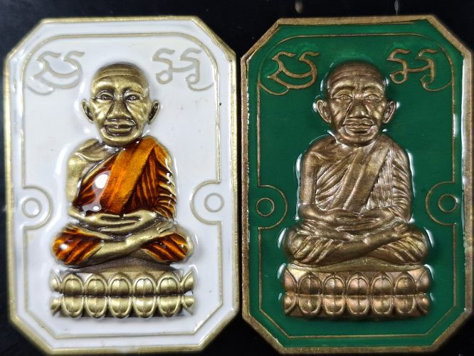 วัดใจ หลวงปู่ทวด หลวงปู่ศิลา เมตตาอธิษฐานจิต รุ่นเลื่อนสมณศักดิ์ เหนือดวง เนื้ออัลปาก้า ลงยา No.539 |