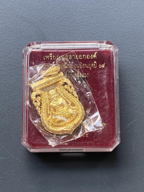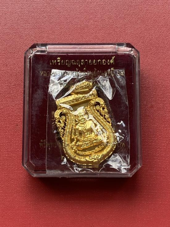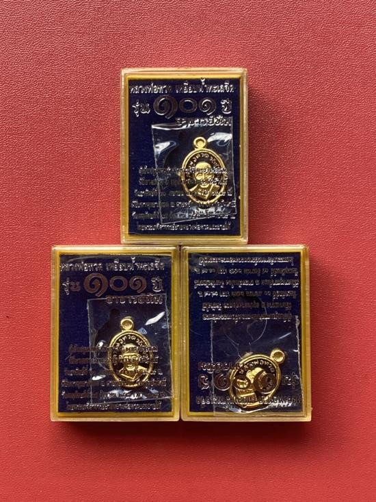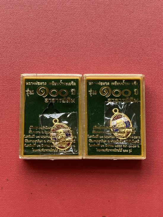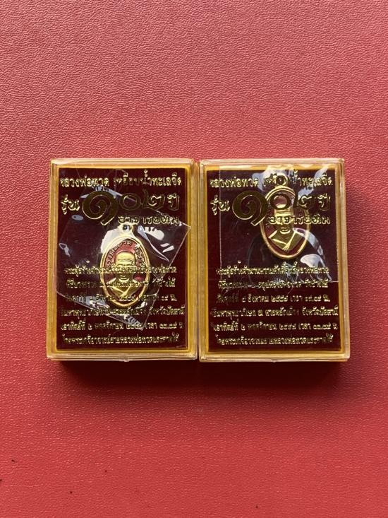 เคาะเดียวแดง หลวงปู่ทวด พิมพ์หน้าเลื่อน รุ่น เจริญพรสรงน้ำ เลข100 เนื้อ บรอนชุบทอง |