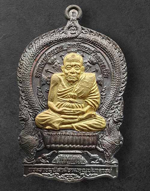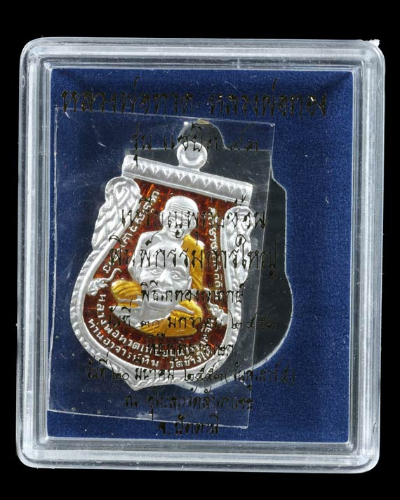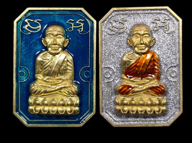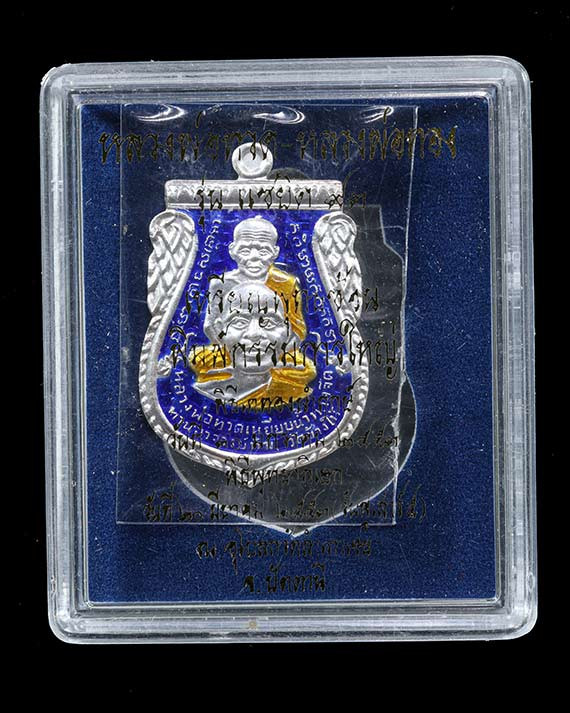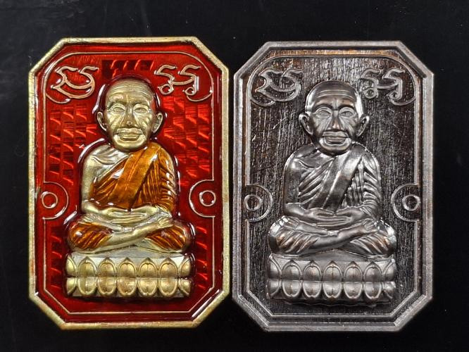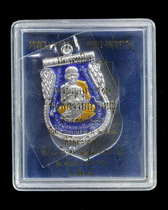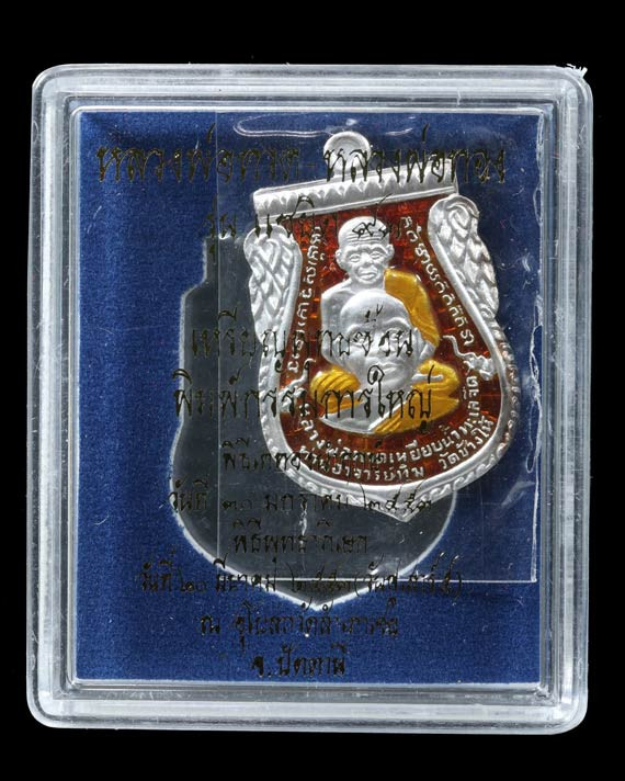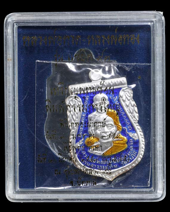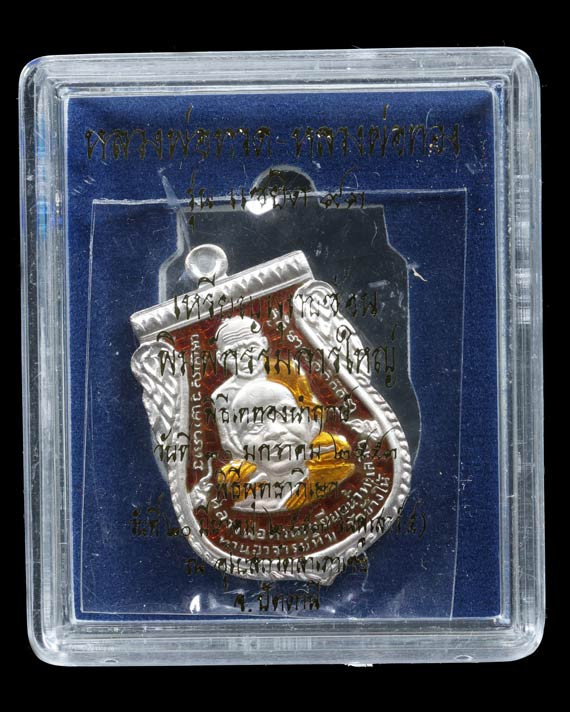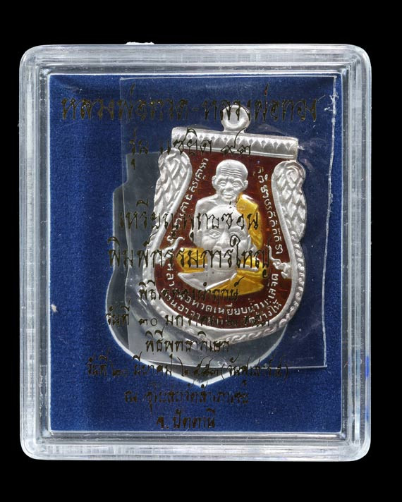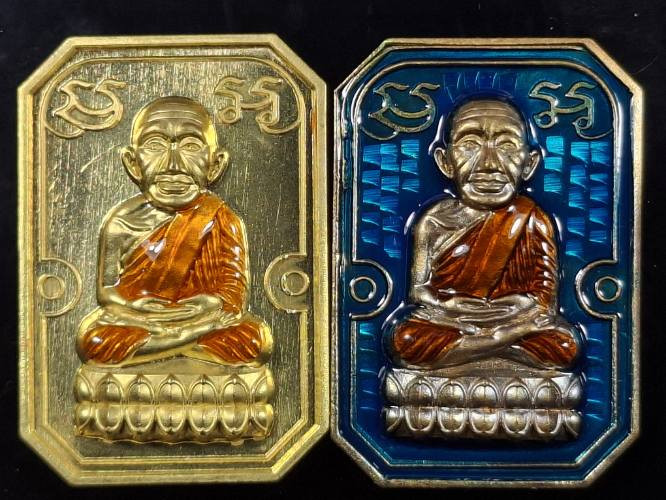 วัดใจ หลวงปู่ทวด หลวงปู่ศิลา เมตตาอธิษฐานจิต รุ่นเลื่อนสมณศักดิ์ เหนือดวง เนื้อทองทิพย์ ลงยา No.90 |