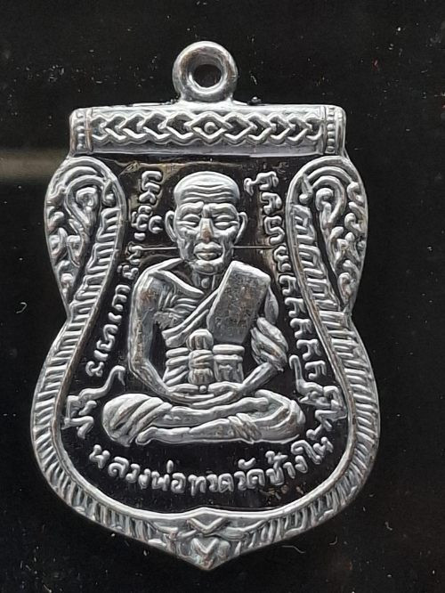 หลวงปู่ทวด รุ่นปาฎิหารย์ สองโพธิสัตว์ ปลุกเสก 8 ว่าระ เนื้อเงินรมดำชาตินผิวพิเศษ จำนวนสร้าง 199 เหรียญ เลข 82 |