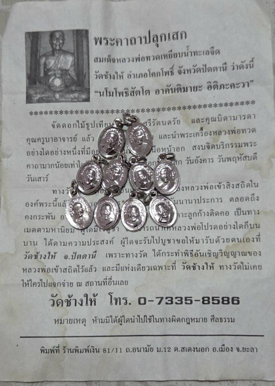 หลวงพ่อทวด ปาฏิหาริย์ หล่อโบราณ ครบรอบ 5 ปี ฝังชิ้นส่วนสมเด็จบางขุนพรหมหลังฝังแร่ ปี52 วัดห้วยมงคล no.2 |