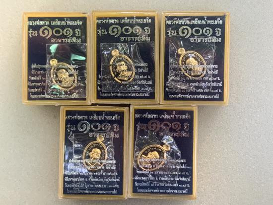 เม็ดแตงหลวงปู่ทวด อาจารย์ทิม รุ่น101ปี เนื้อทองแดงนอกชุบทองลงยาแดง เคาะเดียวครับ 5 องค์