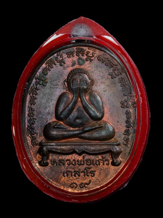 เหรียญปิดตา ปี19 หลวงปู่แก้ว เกสาโร มีผิวไฟ |