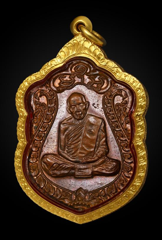 หรียญหลวงปู่ทิม วัดละหารไร่ รุ่นเสมาแปดรอบ พิมพ์ห้าขยัก เนื้อทองแดง ปี 2518 เลี่ยมทองพร้อมใช้ |