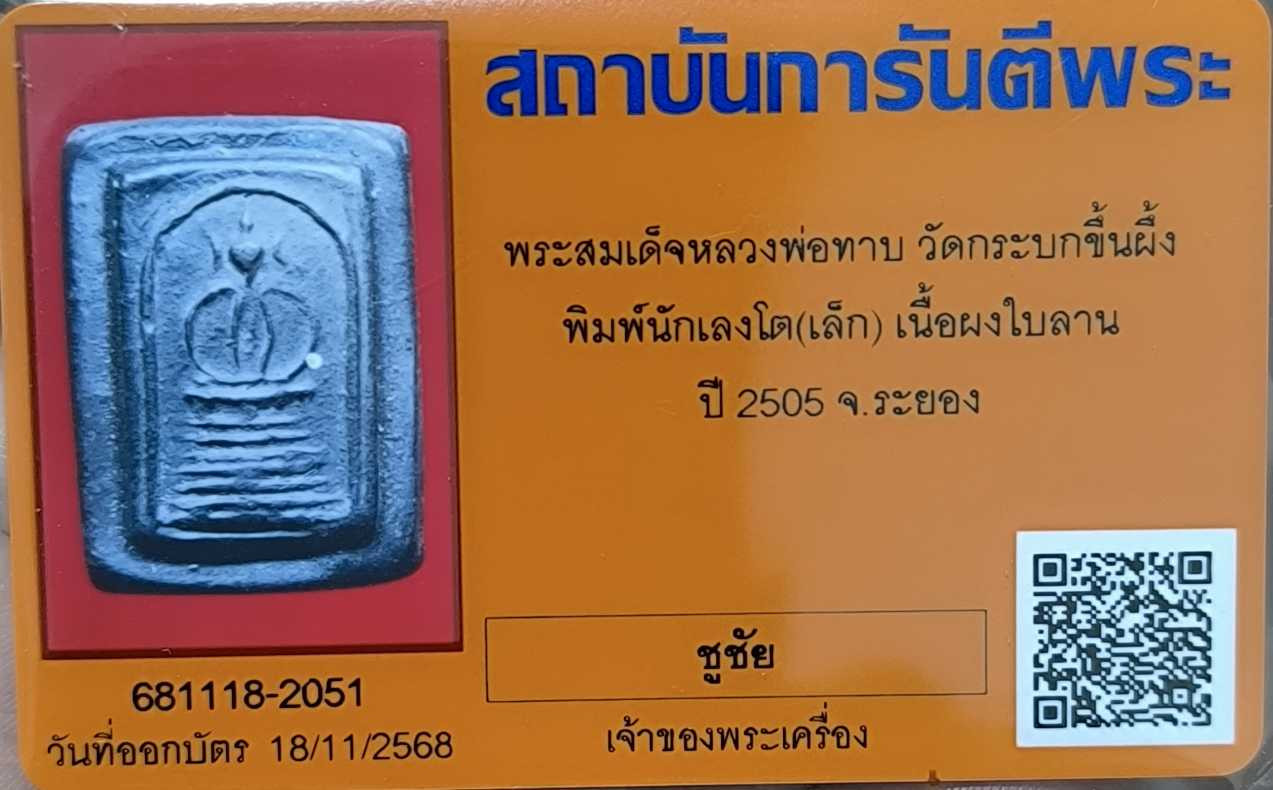 เนื้อพิเศษ สมเด็จหลังยันต์สาม เสื้อเหลือง พร้อมบัตร |