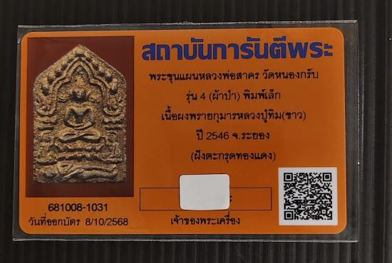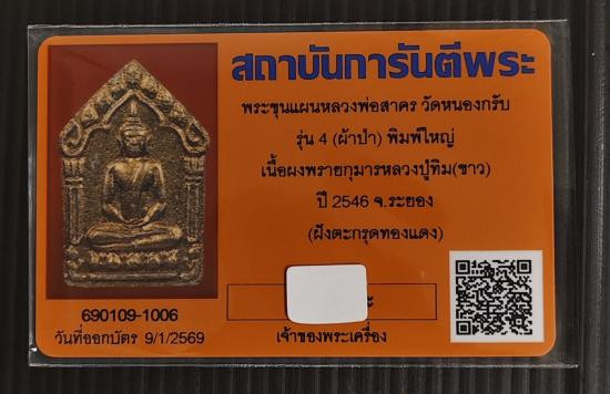 เริ่มเคาะแรก พระขุนแผนพิมพ์เล็ก ทาทอง หลวงพ่อสาคร วัดหนองกรับ จ.ระยอง ปี 2543 เนื้อผงพรายกุมารหลวงปู่ทิม สภาพสวยแชมป์พร้อมกล่องเดิม มาพร้อมบัตรรับรองจีพระ |