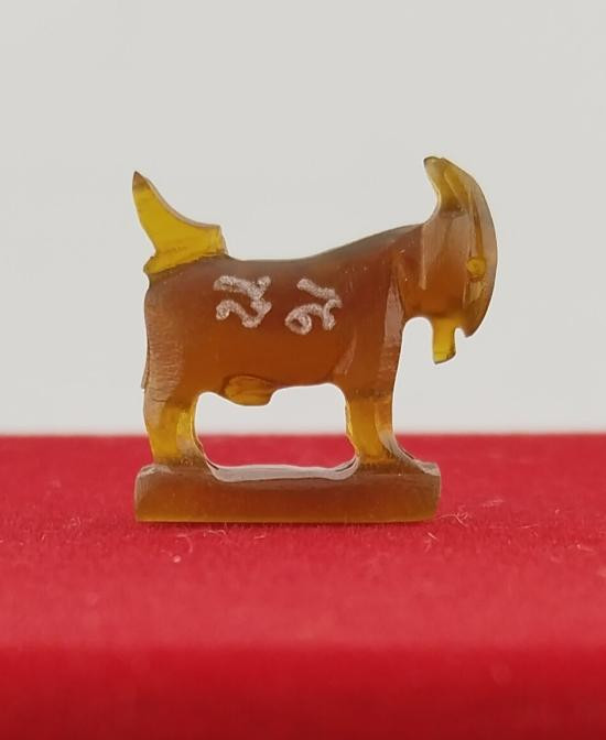 เคาะเดียว 100 (คัดสวย ขนาดกลางห้อยคอสวย) แพะ หลวงพ่อสิน แกะสลักเนื้อเขาควายเผือก สีน้ำผึ้งนิยม |