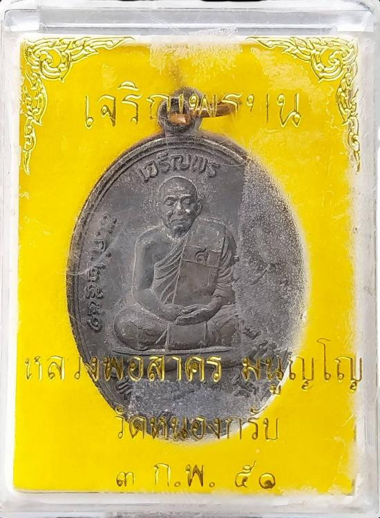 ** วัดใจ ** เหรียญเจริญพรบน เนื้อนวะ หลวงพ่อสาคร วัดหนองกรับ สวยตามภาพ มีกล่อง |