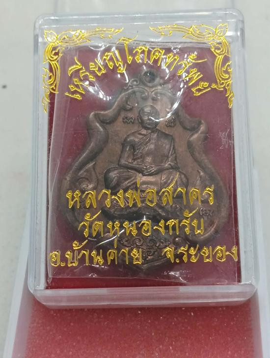 เหรียญห่วงเชื่อม หลวงพ่อสาคร วัดหนองกรับ จ.ระยอง ปี 52 เนื้อทองแดง no 6013 เลี่ยมสวยพร้อมใช้ |