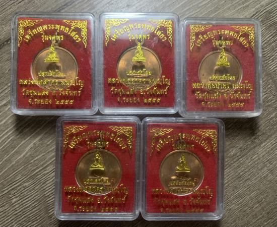 หลวงพ่อสิน วัดละหารใหญ่ เหรียญนั่งพานวัดบ้านคลอง ปี2559 เนื้อนวะโลหะ มีกล่อง จำนวน 5 เหรียญ |