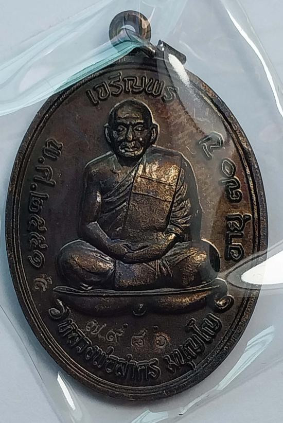 เหรียญเจริญพรบน เนื้อทองแดงรมดำ ปี 2551 หลวงพ่อสาคร วัดหนองกรับ หมายเลข 7986 สวยเดิม จมูกโด่ง พร้อมกล่องเดิม |