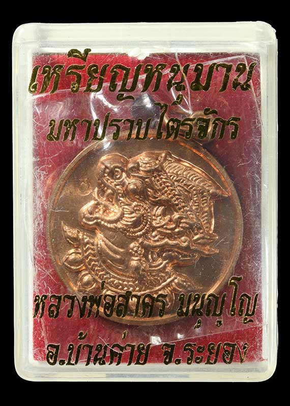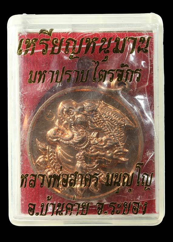 เหรียญ มหาโภคทรัพย์ หลวงพ่อสาคร วัดหนองกรับ เนื้อทองฝาบาตร หมายเลข 1035 ซีลเดิมจากวัด พร้อมกล่องเดิม |