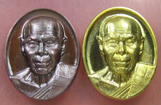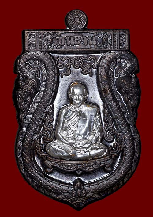 วัดใจ พระขุนแผนชมตลาด หลังรูปเหมือน ปี 2547 เนื้อทองแดงลมดำ สร้าง 5000 เหรียญ หลวงพ่อสาคร วัดหนองกรับ |