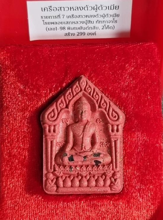 ขุนแผนพรายกุมาร ที่ระลึก อายุวัฒนมงคล ๙๘ ปี หลวงพ่อสิน วัดละหารใหญ่ จ.ระยอง เครือสาวหลงตัวผู้ตัวเมีย โรยพลอยหลวงปู่สิน สร้าง 299 องค์ หมายเลข 73 พร้อมกล่อง |