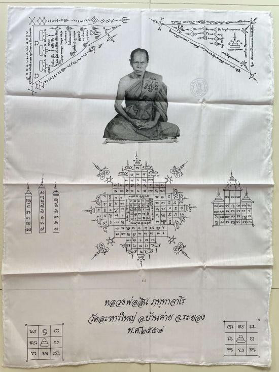 ผ้ายันต์ ปีเก่า 2557 มีปั๊มยันต์ ตราวัด และเลขโค๊ด หลวงพ่อสิน วัดละหารใหญ่ จ.ระยอง (ขนาดประมาณ 29 x 22 นิ้ว) สภาพสวยเดิม เก่าเก็บ ไม่ผ่านการใช้งาน |