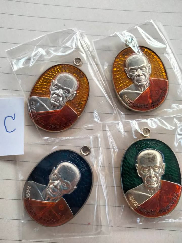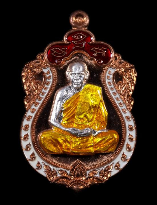 เหรียญเสมาเล็ก หลวงพ่อสิน วัดละหารใหญ่ ระยอง รุ่นเจริญพร ปี 2552 เนื้อเงินลงยา 3 สี ตอกโค๊ต หมายเลข ๓๙๙๙ พร้อมเลี่ยม |