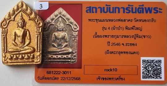 **วัดใจครับ** ขุนแผนหลวงพ่อสาคร วัดหนองกรับ รุ่น4 (ผ้าป่า) พิมพ์ใหญ่ ปี2546 |