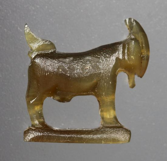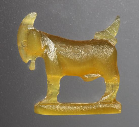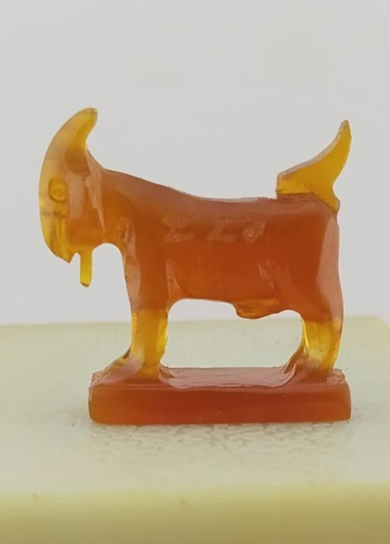 (ตัวใหญ่ คัดสวย เคาะเดียว) แพะ หลวงพ่อสิน แกะสลักเนื้อเขาควายเผือก สีโค้ก |