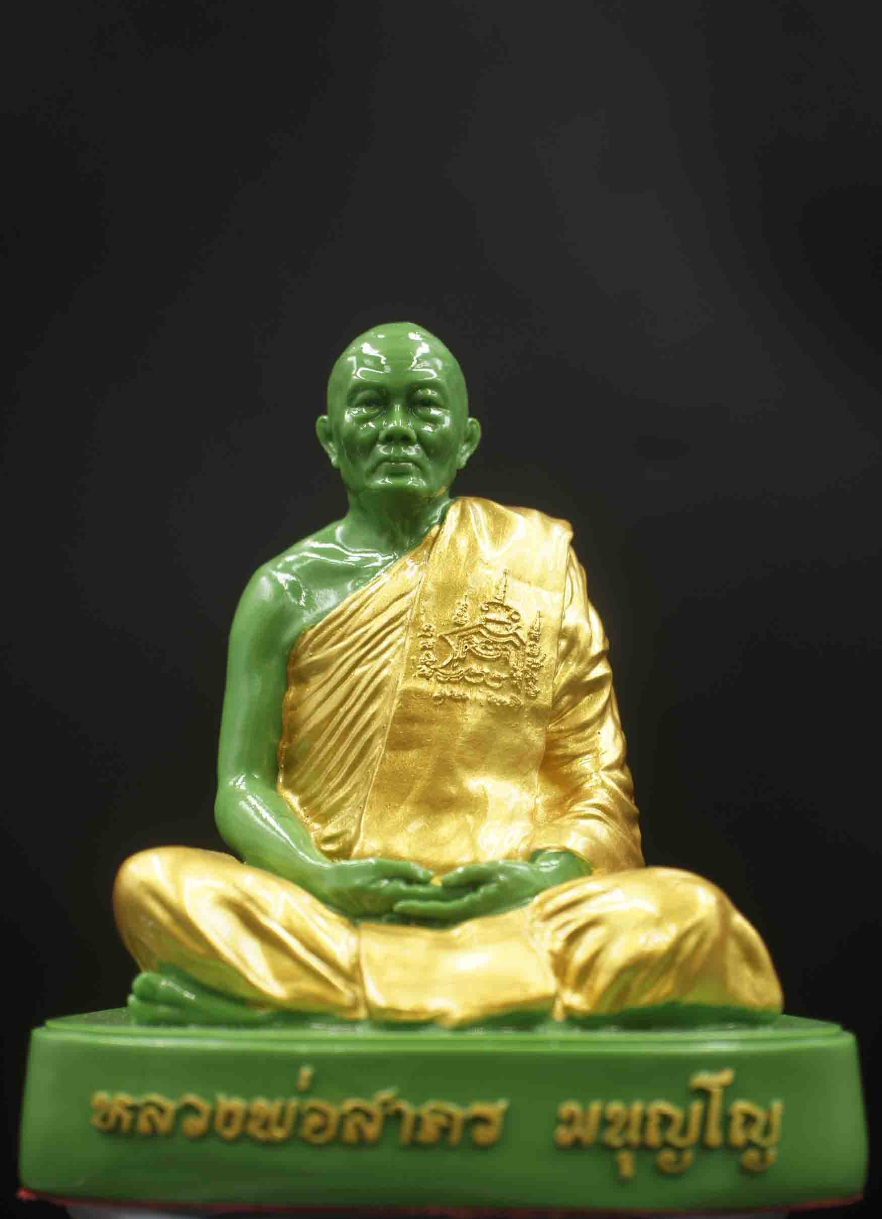 พระบูชา รูปหล่อ หลวงพ่อสาคร ( ย้อนยุค ) เนื้อเรซิ่นเขียว จีวรทอง ปี 2566 ขนาดหน้าตัก 3 นิ้ว สร้าง 1499 องค์ หมายเลข 3 หลัก ** สวย **799** ( หลวงพี่ภุชงค์ ศฺิษย์หลวงพ่อสาคร ปลุกเสก วัดหนองกรับ ) ขนาดคว |