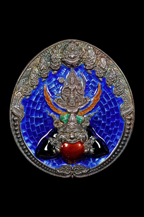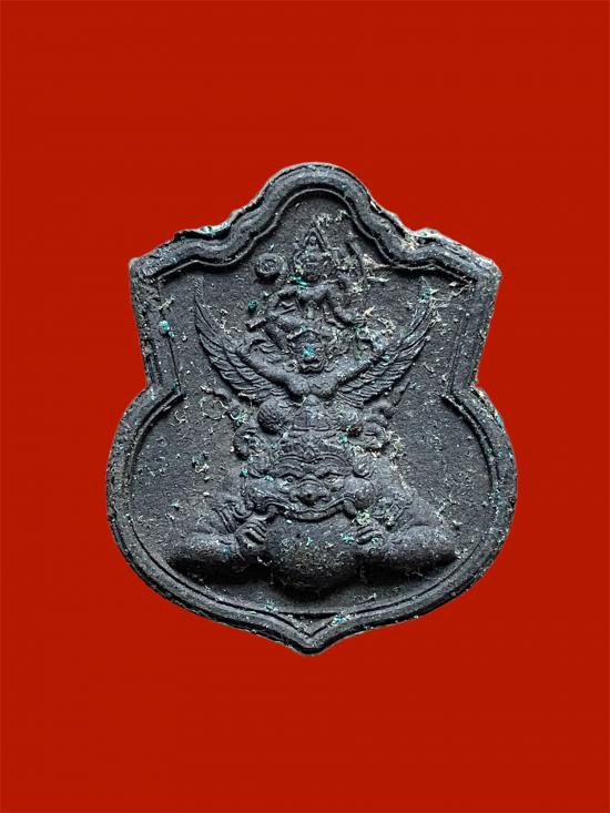 พระนารายณ์ทรงครุฑประทับบนพระราหู ท่านเจ้าคุณธงชัย วัดไตรมิตร เนื้อผงพุทธคุณ รุ่นแรก หลังยันต์ดวง ปี 2545 |