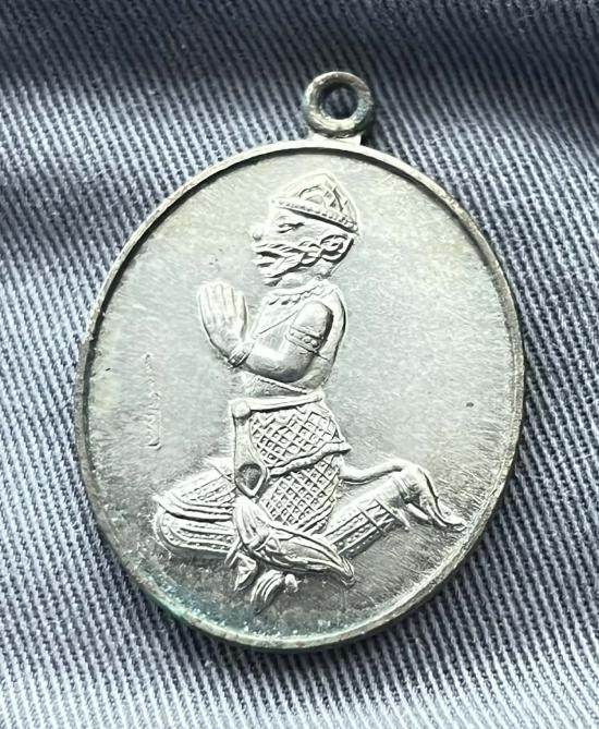 เหรียญหนุมานร่ายเวทย์ (หนุมานมนต์) เนื้ออัลปาก้า หลวงพ่อชำนาญ วัดบางกุฎีทอง ปี 2555 |