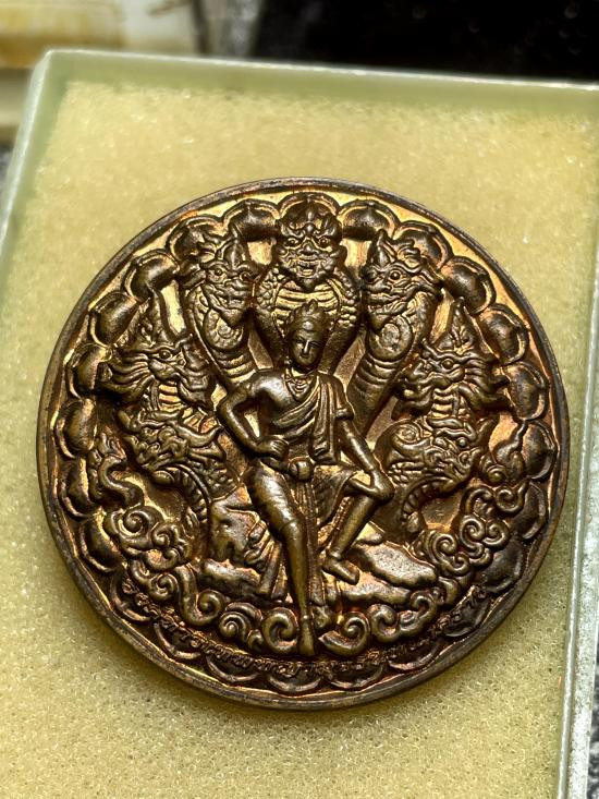 เหรียญพระพุทธนิรโรคันตราย - ท้าวหิรัญพนาสูร ที่ระลึก 120 ปี พระบรมราชสมภพ รัชกาลที่ 6 เนื้อทองแดง โรงพยาบาลพระมงกุฎเกล้า สร้างปี 2544 |