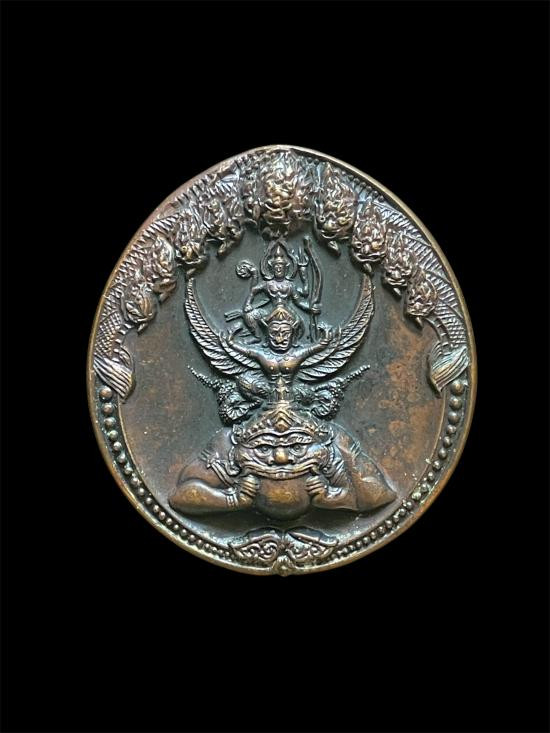 เหรียญนารายณ์ทรงครุฑประทับราหู ท่านเจ้าคุณธงชัย วัดไตรมิตรฯ รุ่นแรก เนื้อนวะโลหะ ปี 2545 พร้อมกล่องเดิม |