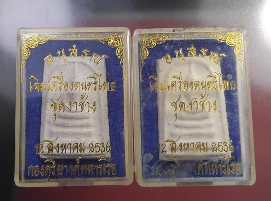 พระสมเด็จอนุสรณ์เจิมเครื่องดนตรีไทย ชุดงาช้าง กองดุริยางค์ทห ารเรือจัดสร้าง ปี 2536 พร้อมกล่องเดิม* 2 องค์ |