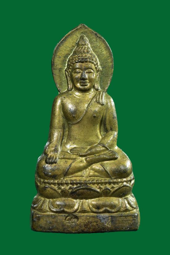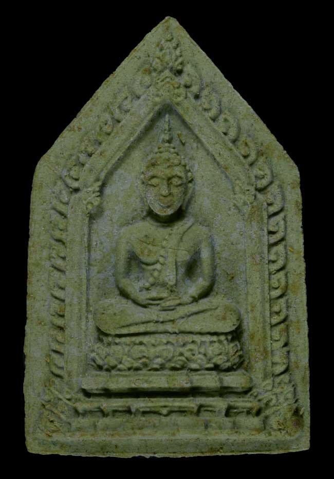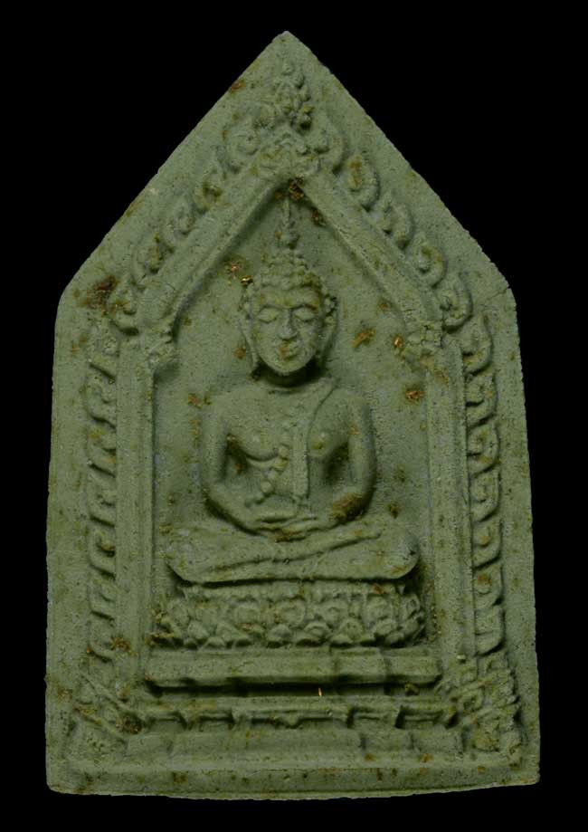 พระพุทธสิหิง เนื้อเขียวพิมพ์เล็ก โรยผงตะไบทอง เกษา สภาพสวย |