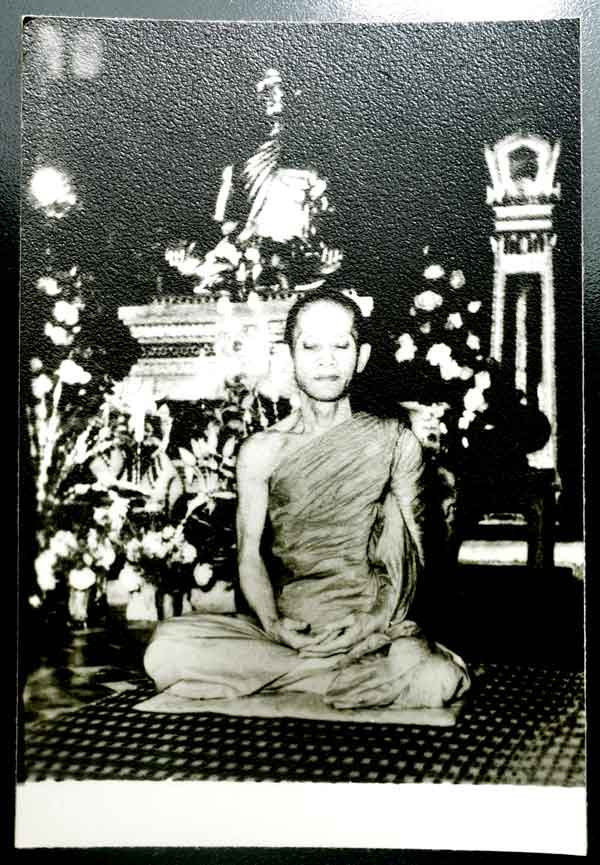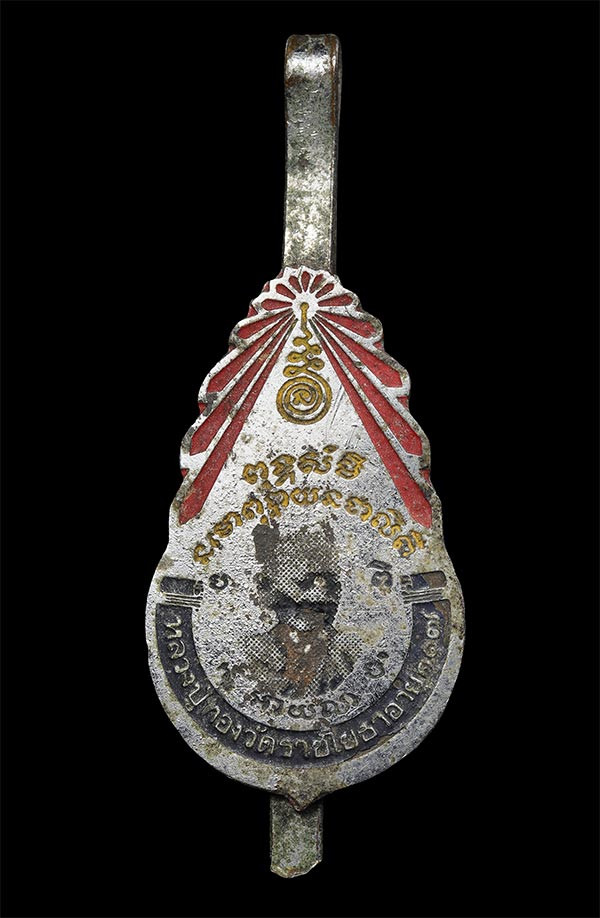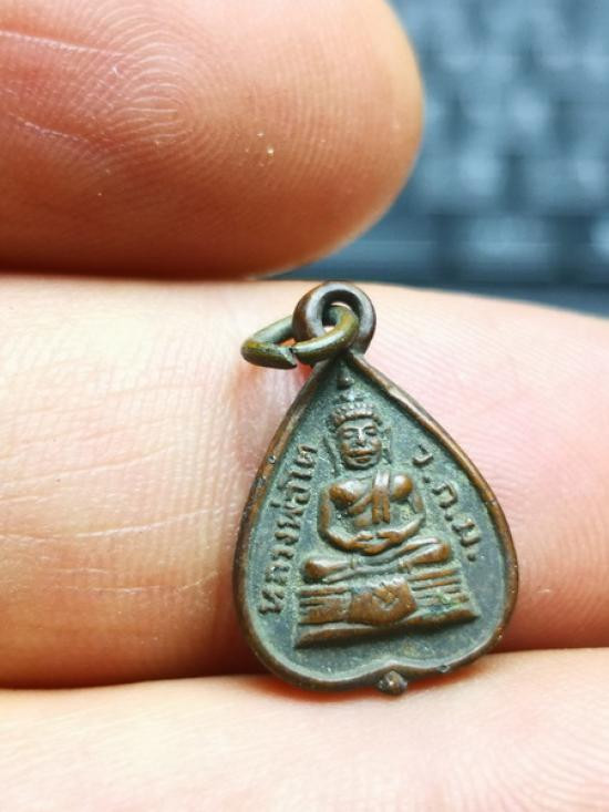 หลวงพ่อฉุย พระมีนธรรมภาณ หลัง อักษรย่อ สธ. สมเด็จพระเทพฯ เสด็จพระราชดำเนินปิดทองตัดลูกนิมิต วัดแสนสุข มีนบุรี กรุงเทพมหานคร ปี 2523 เนื้อทองแดง ทันหลวงพ่อปลุกเสก |