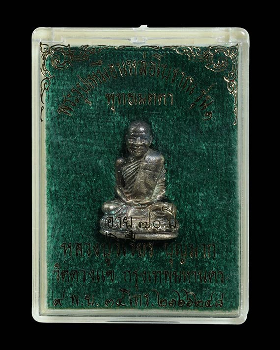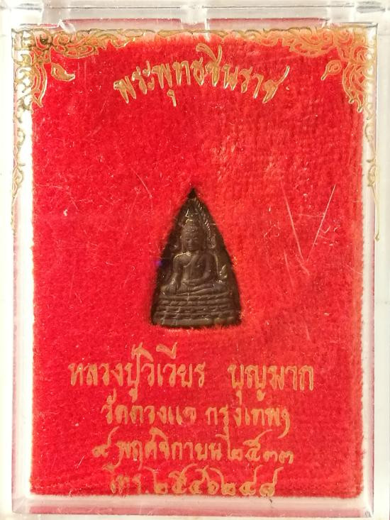 พระพุทธชินราชจิ๋ว พระวิมลธรรมญาณ (ปู่วิเวียร ฐิตปุญฺญเถร) วัดดวงแข กรุงเทพมหานคร ปี ๒๕๓๓ เนื้อนวโลหะ พร้อมกล่อง |