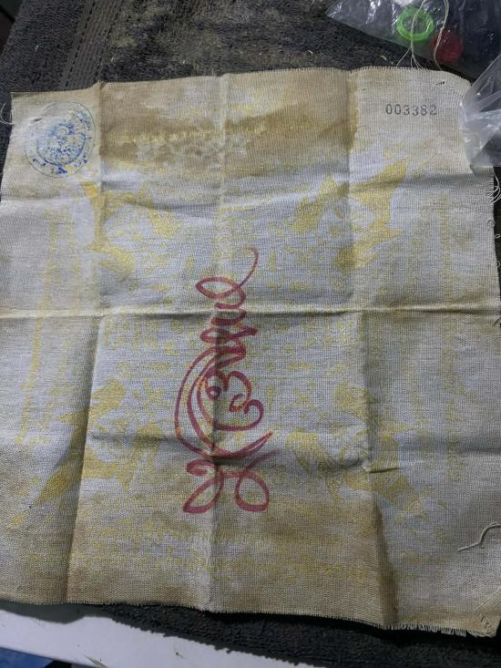 ผ้ายันพรหมสี่หน้า หลวงพ่อชำนาญ พิธีเป่ายันต์ครั้งที่9 ขนาด9x9นิ้ว หมึกสีเหลืองสร้างน้อย |