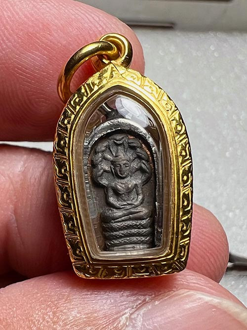 ปรกใบมะขาม ปี21 เนื้อนวะ สภาพสวย ใบหน้าคมชัด จมูกโด่งๆ มีเลี่ยมเดิมจากวัด พร้อมเลี่ยมทองงามๆ (มีบัตรรับรองพระแท้) |