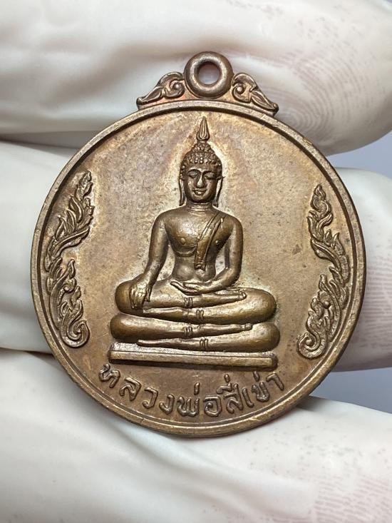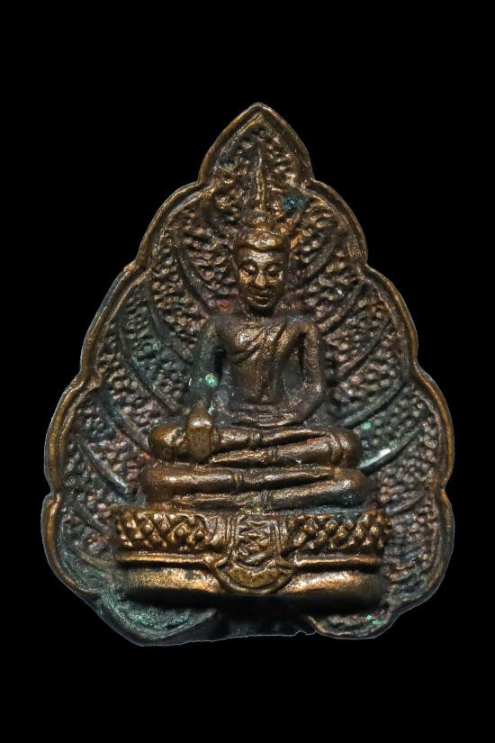 เคาะเดียวแดง พระหลวงพ่อสี่เข่า วัดศาลาครืน ปี 21 เนื้อสําริด พิมพ์ใบโพธิ์ ตอกโค็ด |