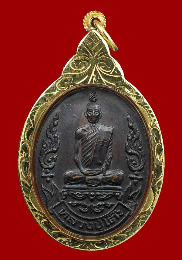 เหรียญลป.โต๊ะ วัดประดู่ฉิมพลี รุ่นเยือนอินเดีย (นิยม ม ขีด) เนื้อทองแดง ปี2519 เลี่ยมทอง / 4 |